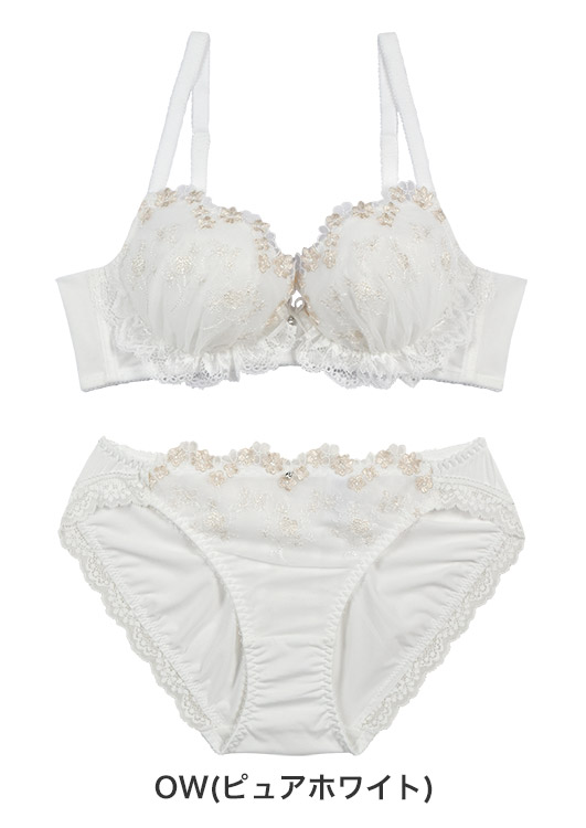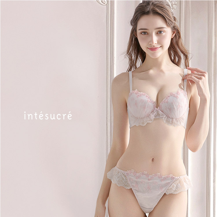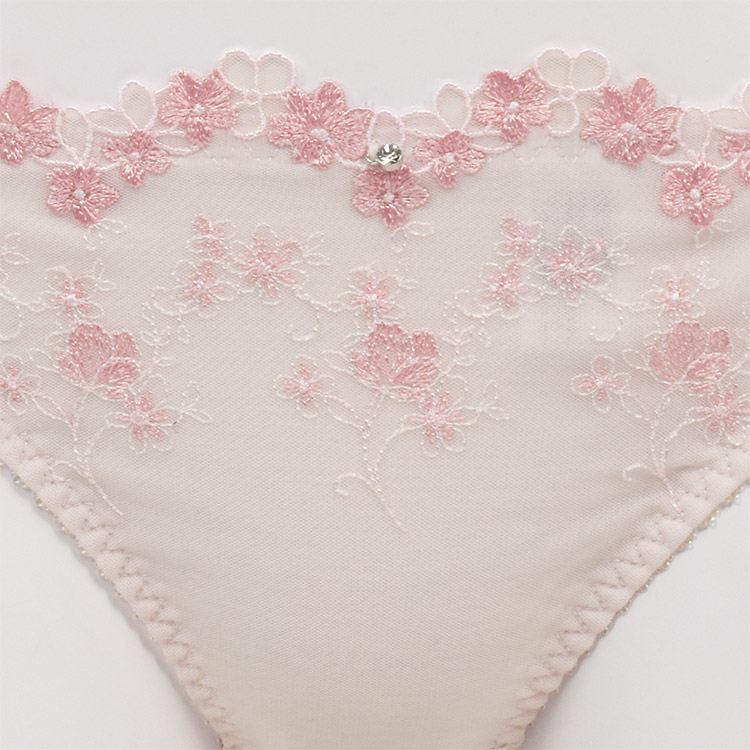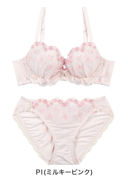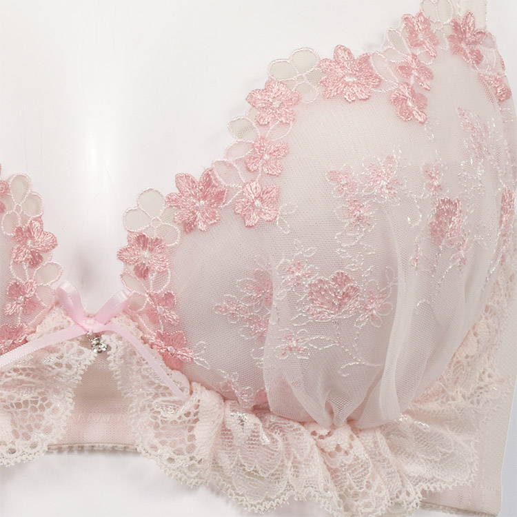 ブーケのような小花の刺繍レース・カップ土台のレースが可愛らしく、バレエコアを意識した足の長いリボンがポイント。