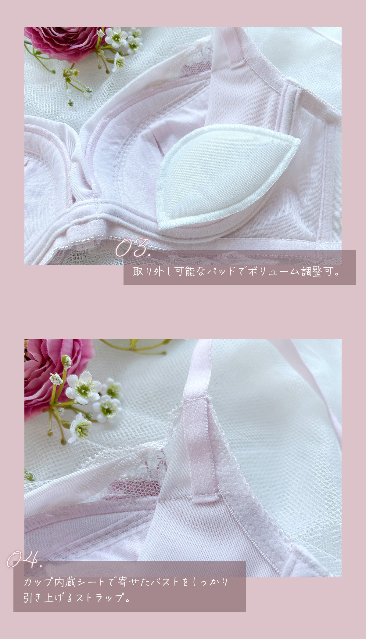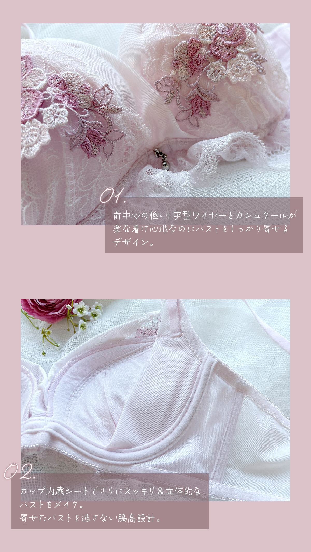 関連キーワード:アンテシュクレ 谷間メイク L字ワイヤー アンダー60cm フェミニン 脇高設計 脇高ブラ