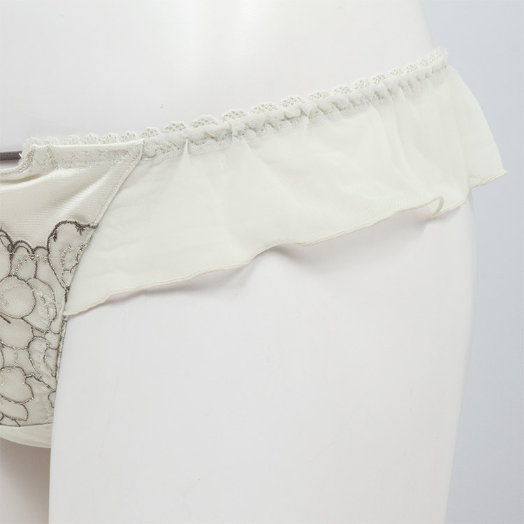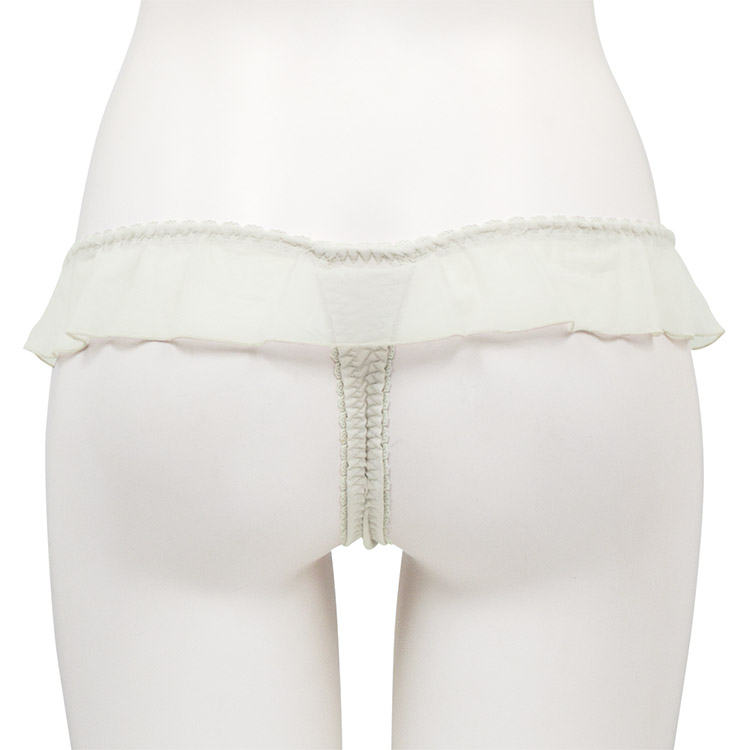V時にのぞいた肌に華奢なクロスとウエストを飾る繊細なフリルがフェティッシュなムードを演出。