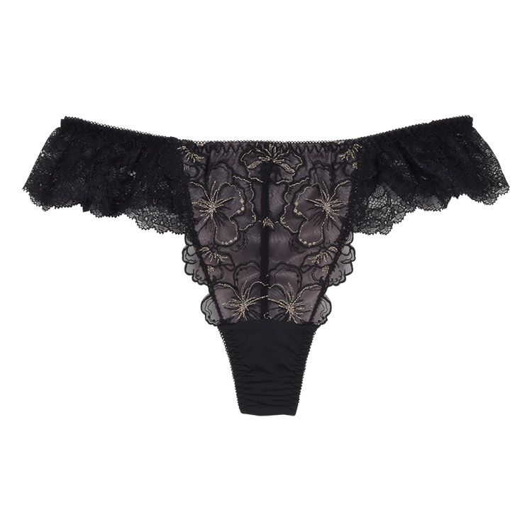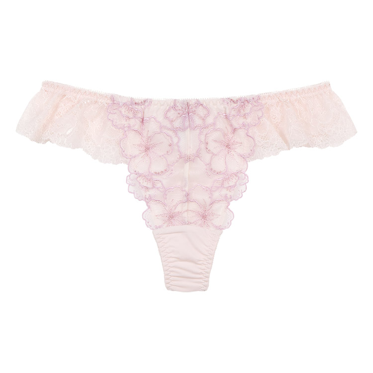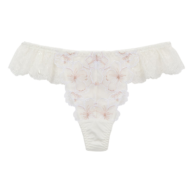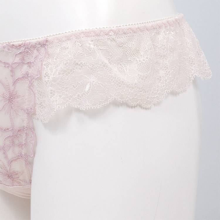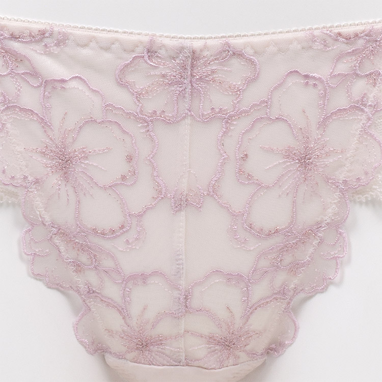 フロントは花柄チュールレースの花びらが付け根に寄り添い、脚を美しく魅せるデザイン。