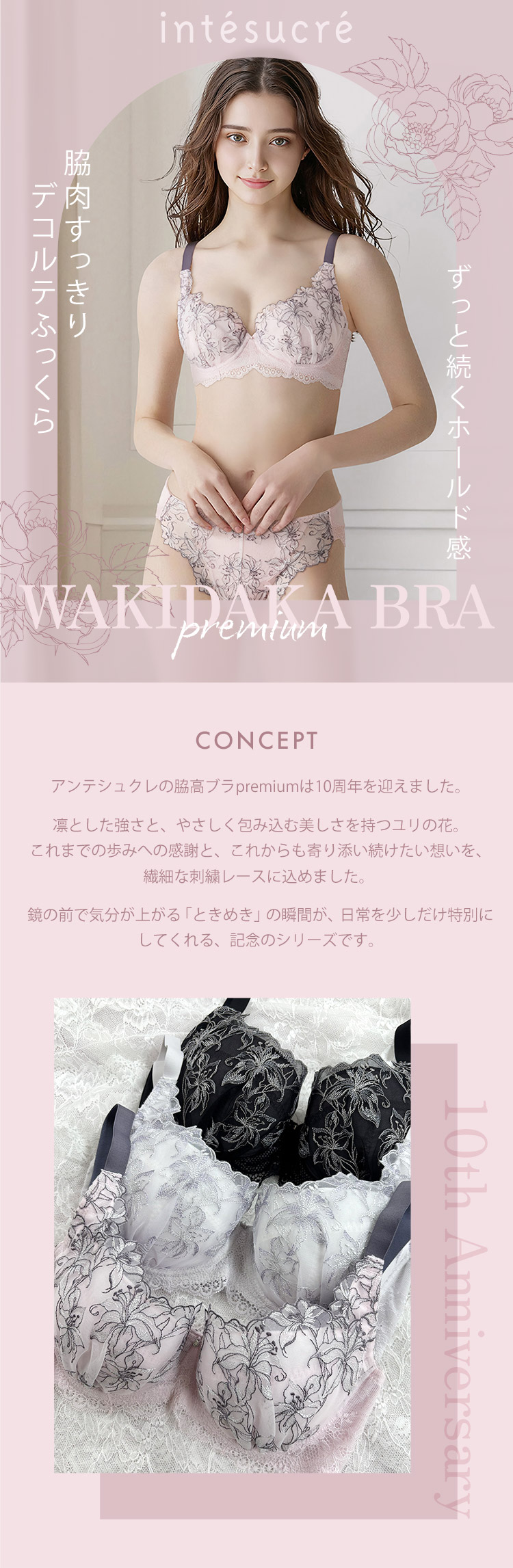 IBT390|アンテシュクレ intesucre 脇高ブラ Premium ブラジャー単品 ふっくらデコルテメイク BCDEFGHIJカップ アンダー60/65/70/75cm