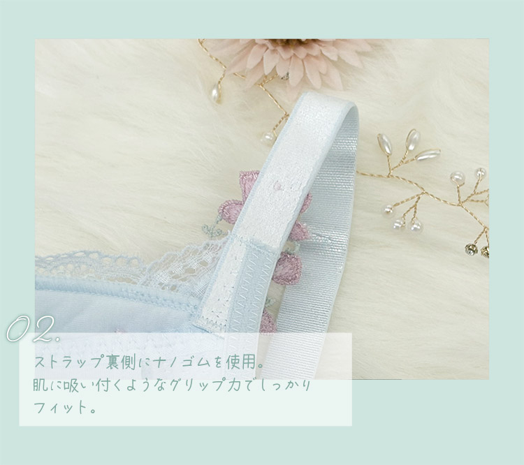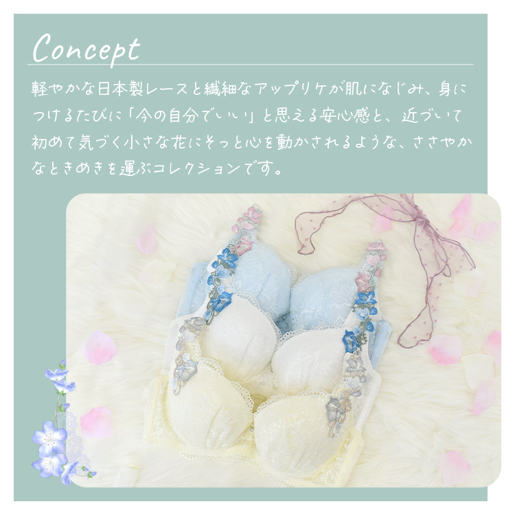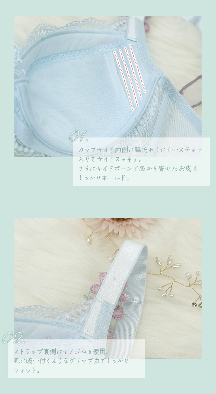 カップ表と土台部分には軽やかな日本製レースを使用。