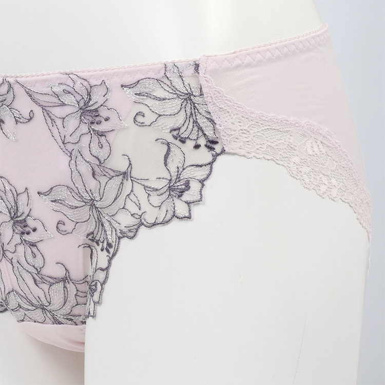 足口は「なみなみ」の細幅レースで食い込みにくく、お尻の段差を軽減。