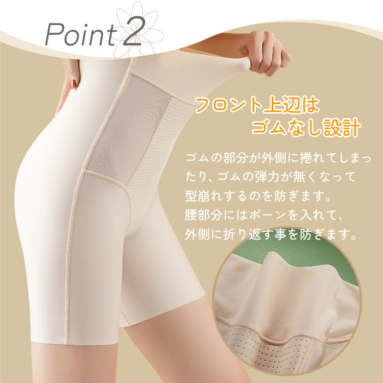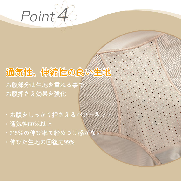 伸びの良いウエスト部 お腹をしっかり押さえるパワーネットとメッシュ生地