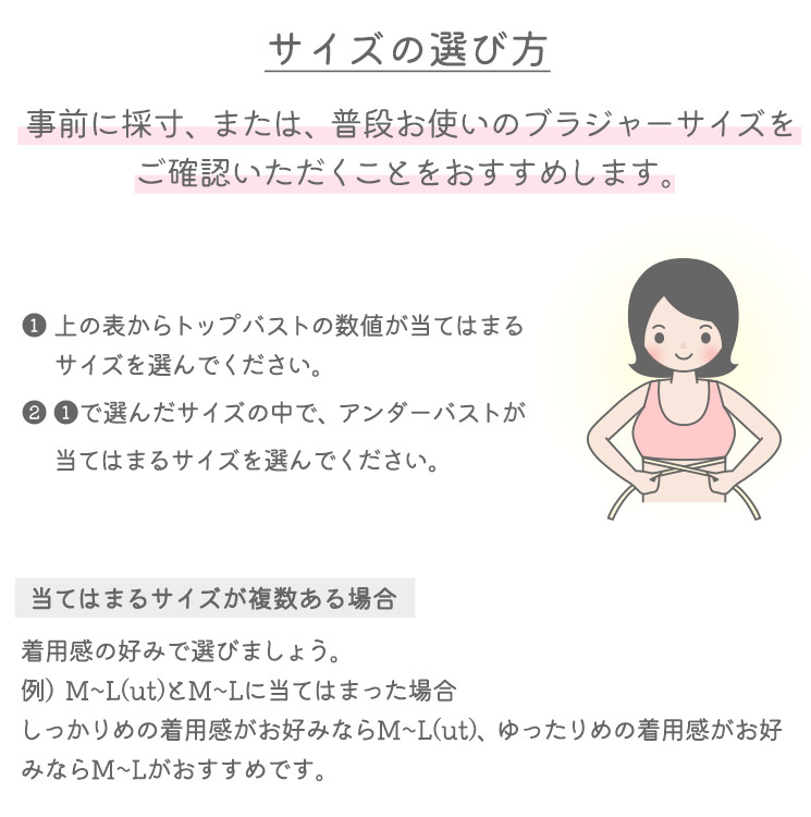 M-L:アンダー65-75cm、バスト79-94cm