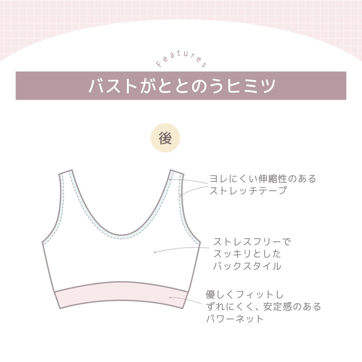 アンダーは生地と生地の間に挟み込んだパワーネットがやさしくフィット。