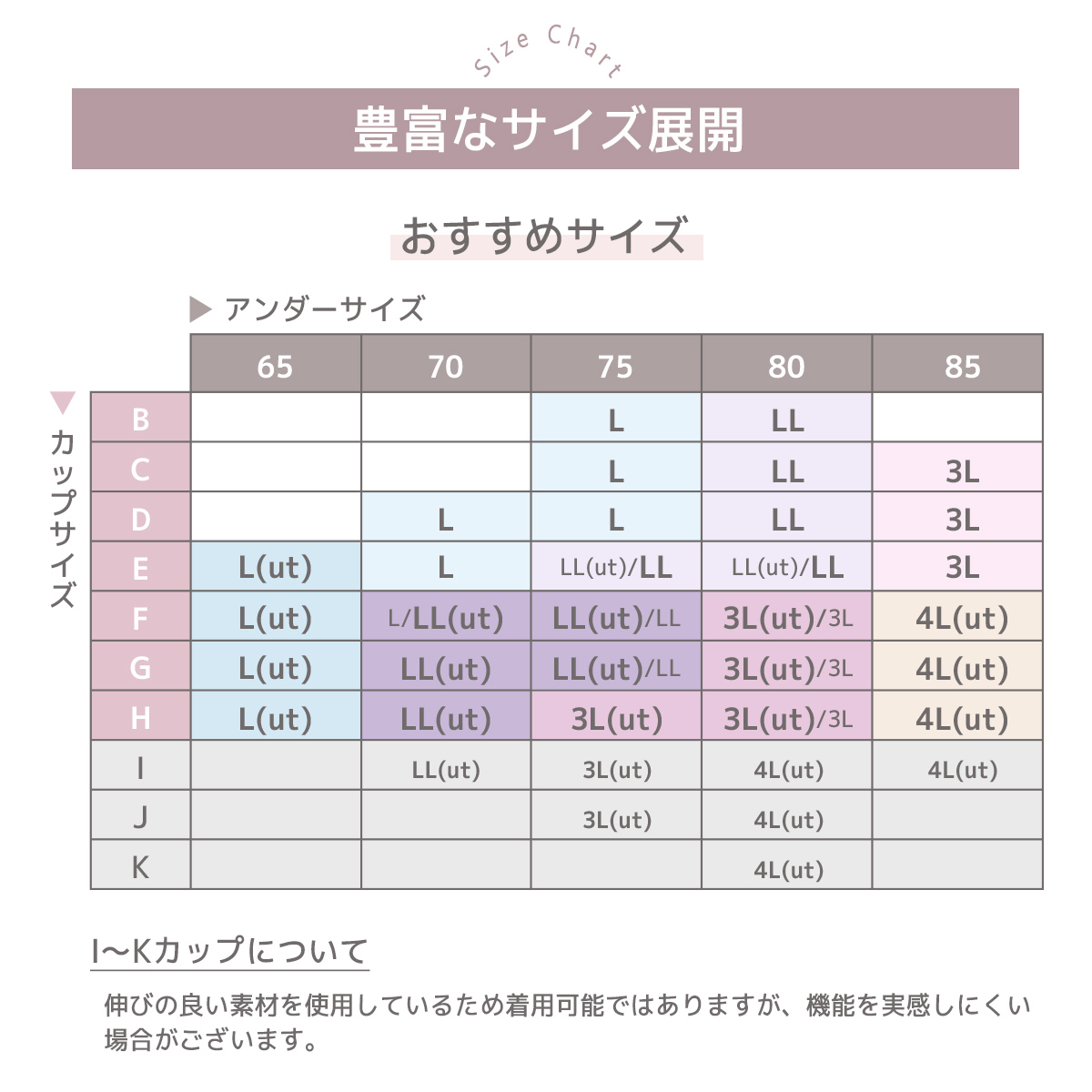 | 4L(ut) | :アンダー78-88cm、バスト107-115cm |