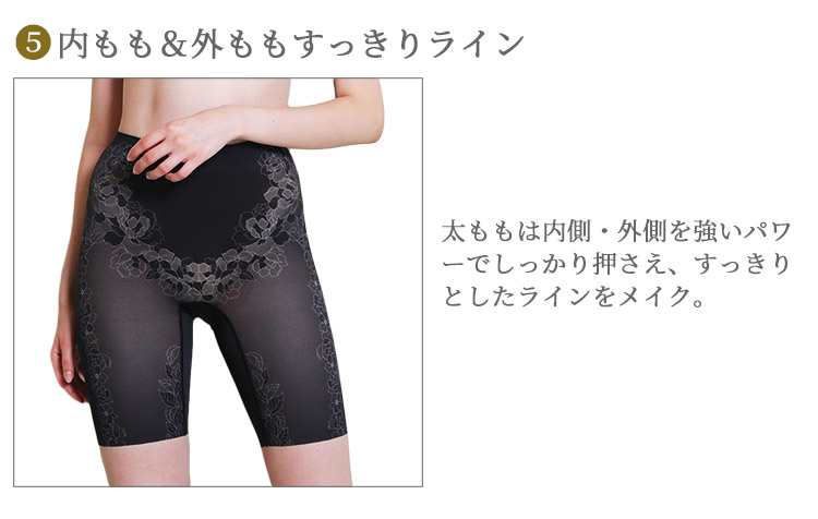 太ももの段差を防ぎ膝上からすらっと段差のない綺麗なレッグラインをメイク