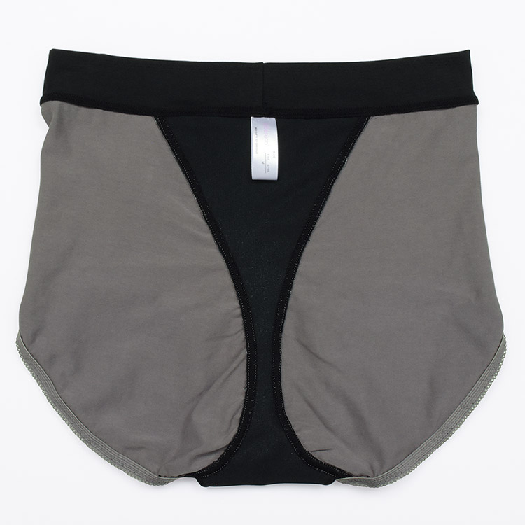 ナプキンのフィット感を高めるためにマチ部分からヒップ上部まで切り替えパネルをいれ、どんな動きにもピタっとフィット。