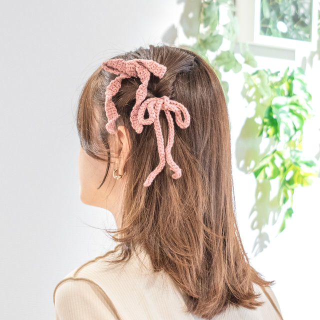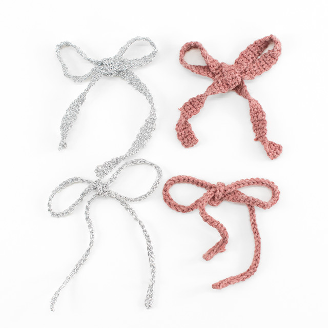小物の装飾やヘアアレンジなどに!プレゼントのラッピングリボンにもおすすめです。余り糸でも作れるのもうれしいポイント!かぎ針編みのシンプルな編み方でできる細巾のリボンは、好きな長さまで編んで結んだらできあがり!かぎ針編みの練習にぴったりです。