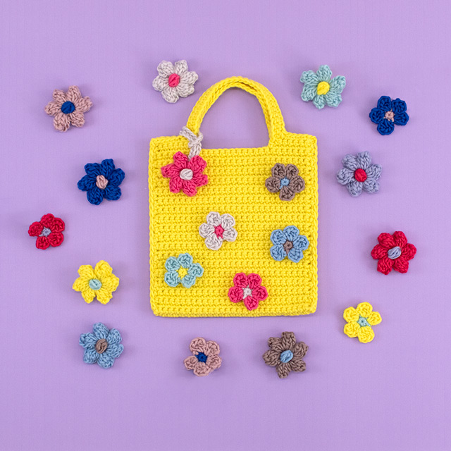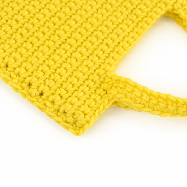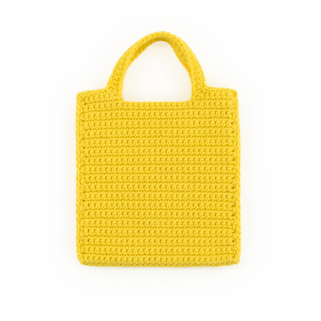 細編みでできるシンプルなぺたんこバッグ。鮮やかなレモンイエローのカラーがファッションのアクセントに。スマホや文庫本などを入れて、ちょっとしたお出かけに!初めてかぎ針で小物を編まれる方にもおすすめです。できあがったポーチにモチーフをつけてデコレーションしてもかわいいです。
