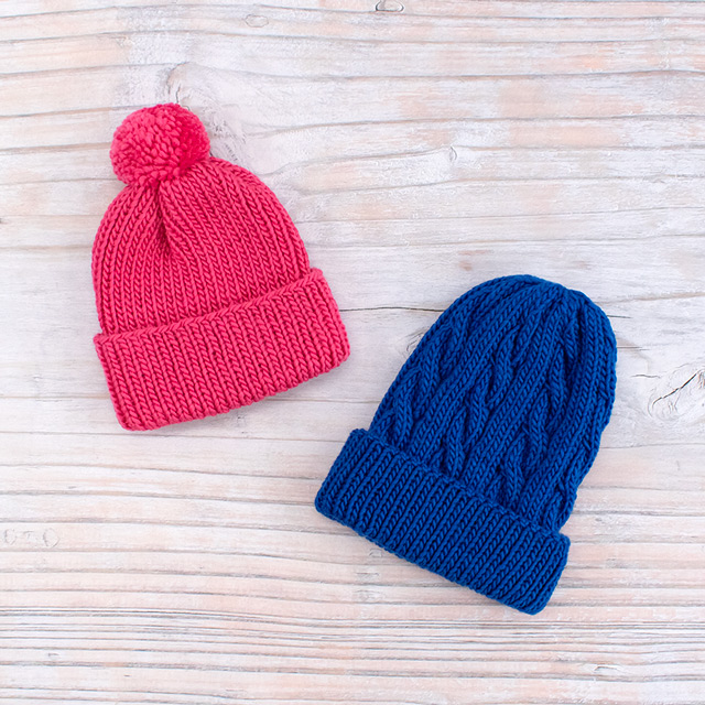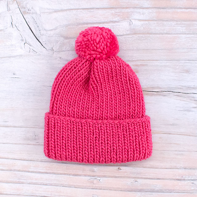 冬のお出かけにぴったりなキッズ帽子。大きめポンポンがアクセントになって、かぶるだけで元気いっぱいの印象に!幅広の折り返しもかわいいです。パステルやビビッドなど明るいカラー展開のフラッフィーロービングを使用しているので、ぜひお子様の好きなカラーで編んでみてください。