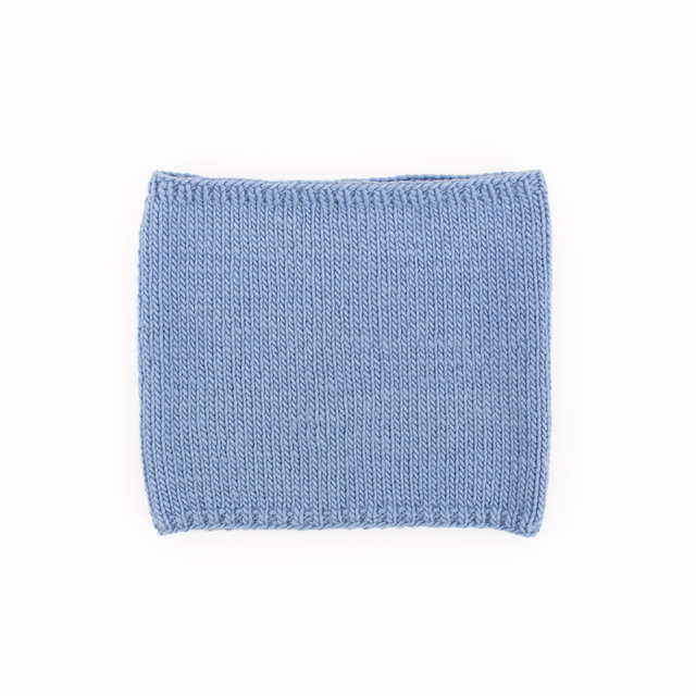 どんなファッションにも合わせやすい、シンプルなメリヤス編みのネックウォーマーです。ネックウォーマーの上下にゴム編みが入っているので着脱しやすくなっています。輪針を使用してまっすぐぐるぐる編んでいきます。太い糸で編めばざくざく編み進むので、仕上がりも早く、はじめてさんにおすすめ。