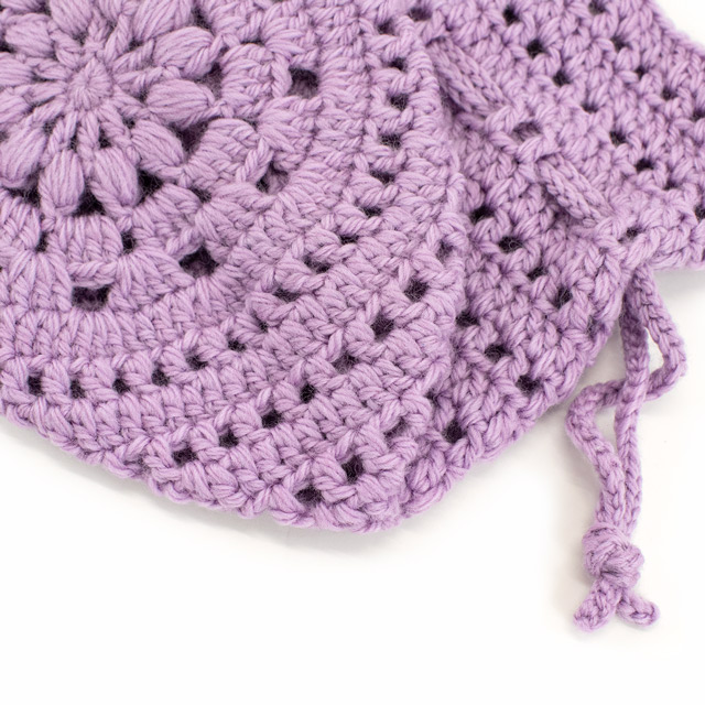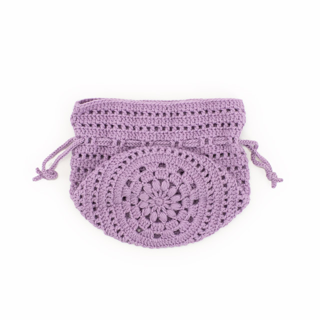 ころんとしたかぎ針編みのミニきんちゃく。ハンドクリームやスプレーボトルなど、バッグの中で迷子になりがちなアイテムの収納にぴったり!立体感のある巾着袋なので、ぬいぐるみやお子様のおもちゃなどを入れても。推し色で作って”ぬい”を入れて一緒におでかけも!底にパプコーン編みをして花びらのように見せているのもかわいいポイント。側面は基本的な長編みとくさり編みの繰り返しなので、かぎ針はじめてさんにもおすすめです。