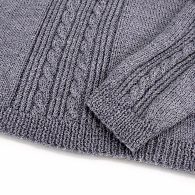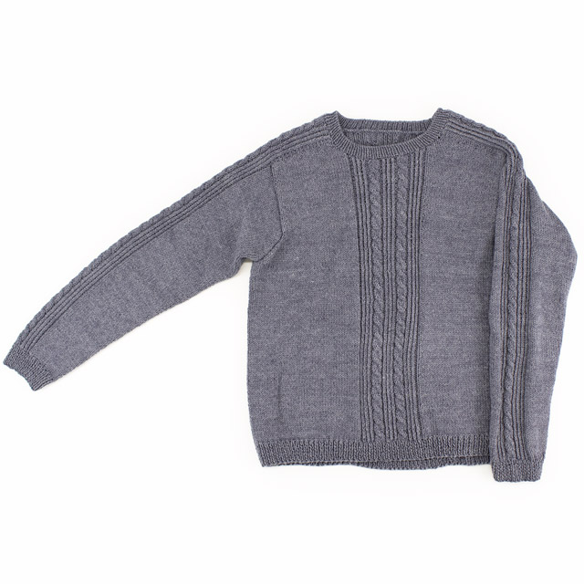 肩のラインがすっきり見えるエポーレットスリーブのセーターです。中心に入ったケーブル模様もおしゃれな印象です。縄編みで肩線まで続けて編むエポーレットスリーブは直線的ですっきりとしたフォルムで、ラグランスリーブとはまた違った印象に。