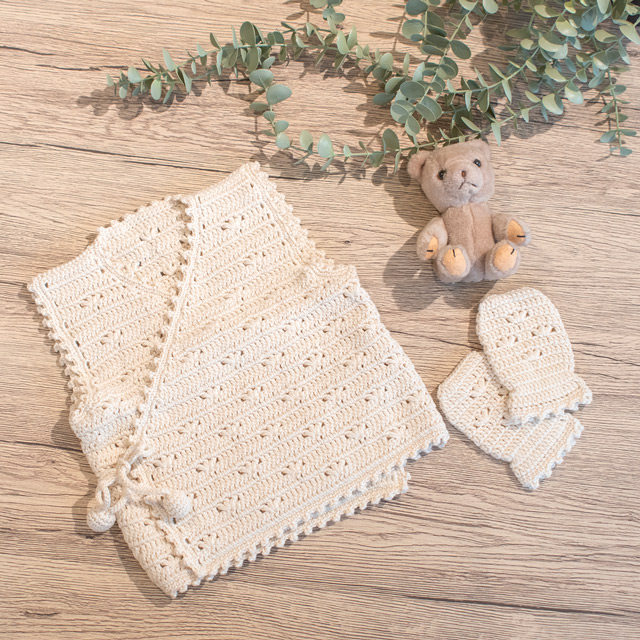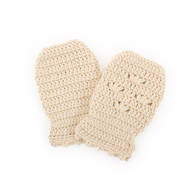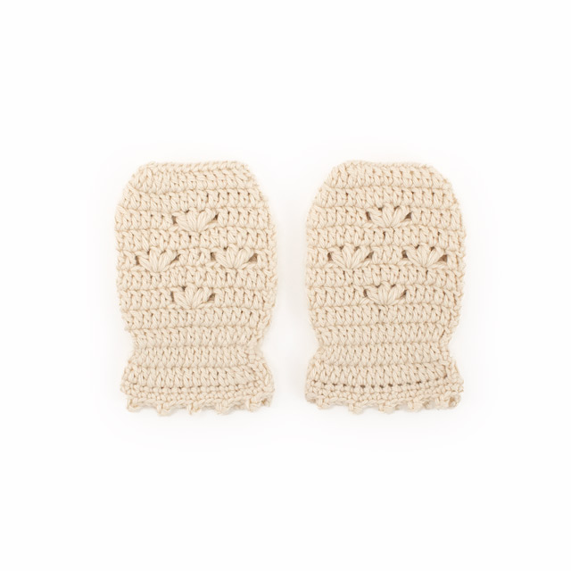 ベビー胴着とおそろいのお花模様のミトン。赤ちゃんの手に合わせた小さなサイズ感がかわいいです。ベビー胴着とミトンのセットで贈り物にも!手首には細いゴムを入れて、手が抜けにくくしています。