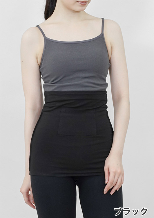 ポケット付きで便利な腹巻。アウターに響きにくいデザインです。