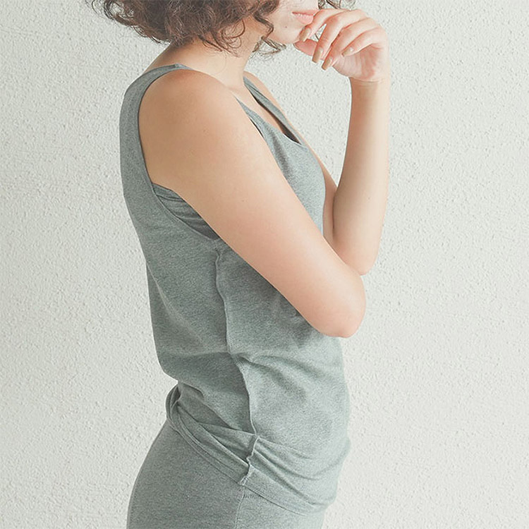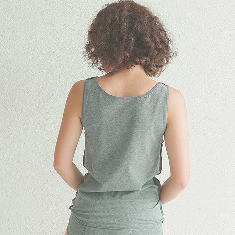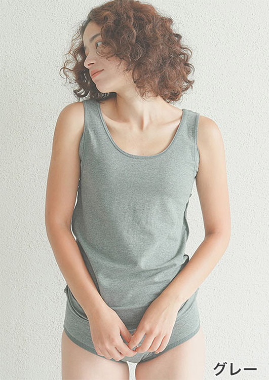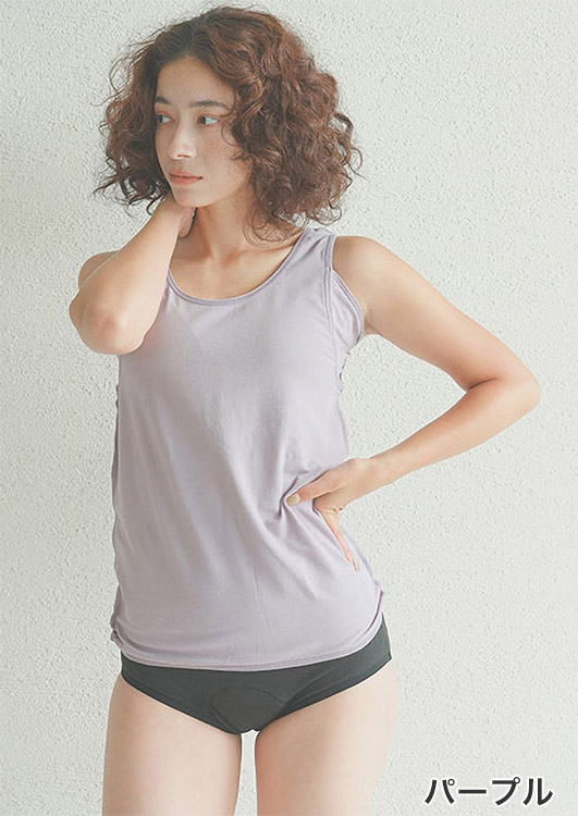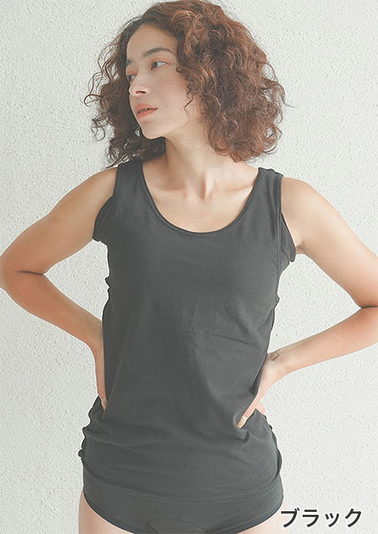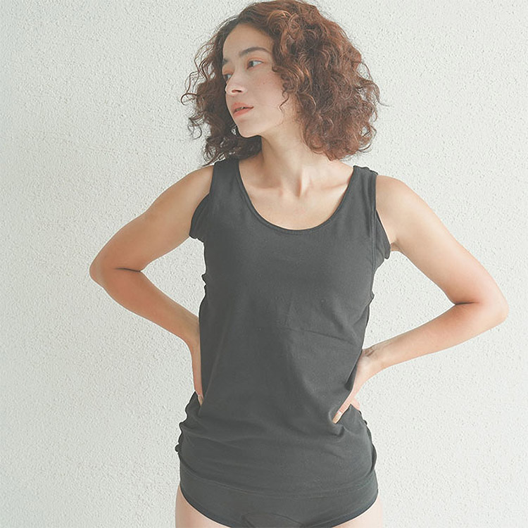 汗取りパットが付いた、オールシーズンに使えるタンクトップ。
