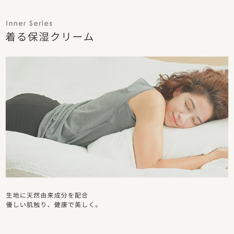 生地にシアバター、オリーブオイル、シルクアミノ酸の3種天然由来成分を配合し、ベールで包み込むような着心地で乾燥をブロック。