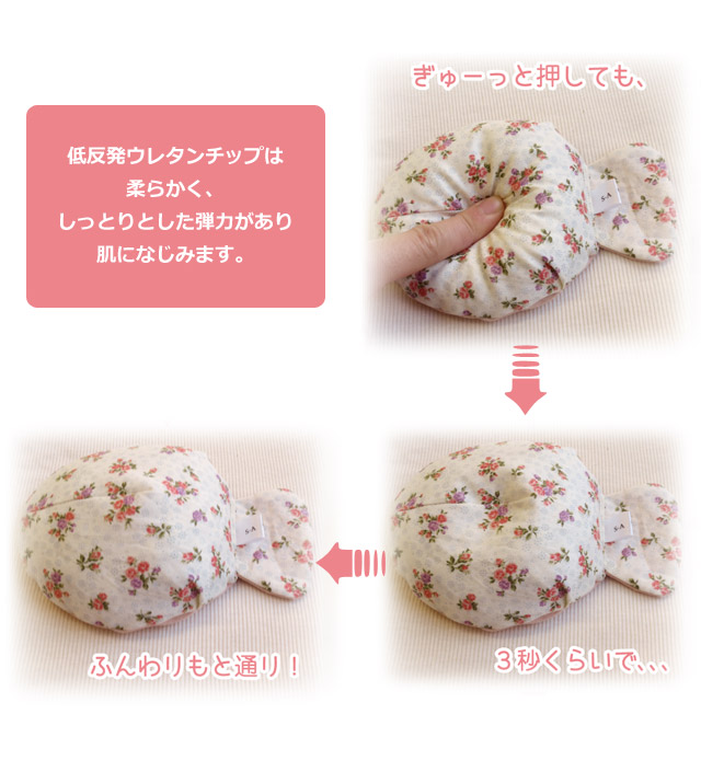 ●中身は低反発ウレタンチップで柔らかく、しっとりとした弾力があり肌になじみます。