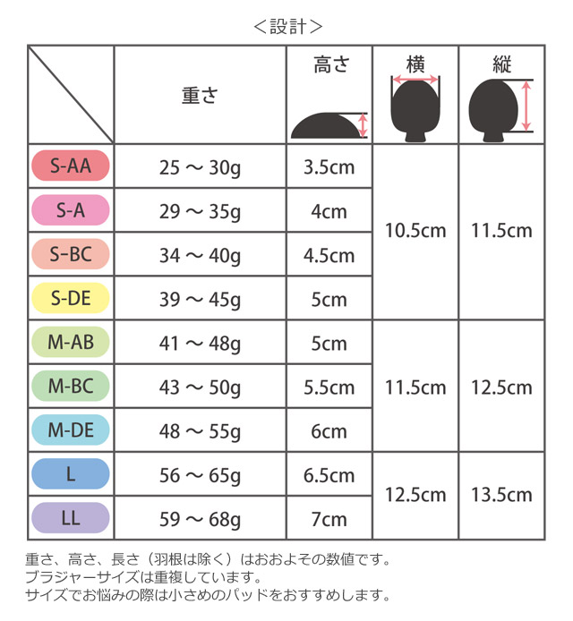 お客様の胸の形に合わせて、パッドは横にしても縦にしても構いません。