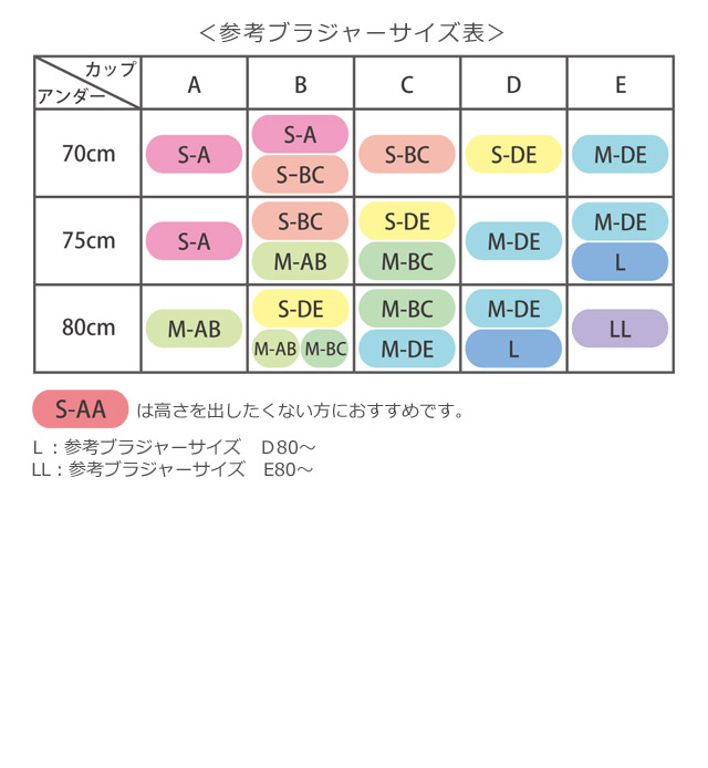 S-A:(参考)適応ブラジャーサイズ A70/A75/B70