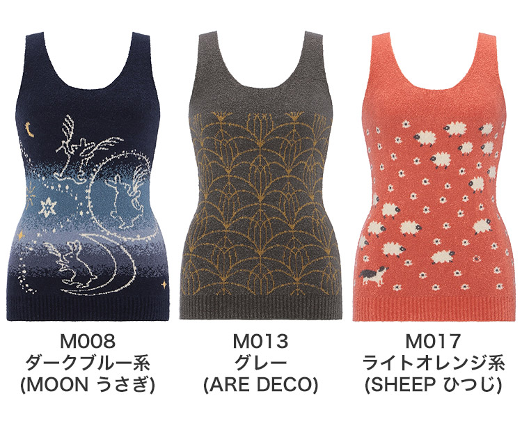 M008 ダークブルー系(MOON うさぎ)、M013 グレー(ARE DECO)、M017 ライトオレンジ系(SHEEP ひつじ)
