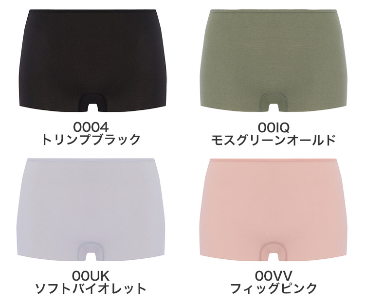 0004 トリンプブラック、00IQ モスグリーンオールド、00UK ソフトバイオレット、00VV フィッグピンク