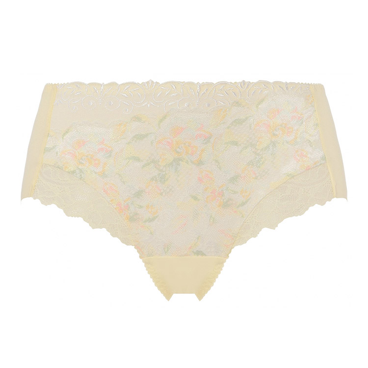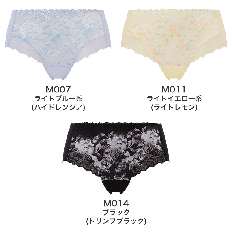 ●はきこみは浅く、脚口はフロントがレース、バックは一枚仕立てのデザインです。