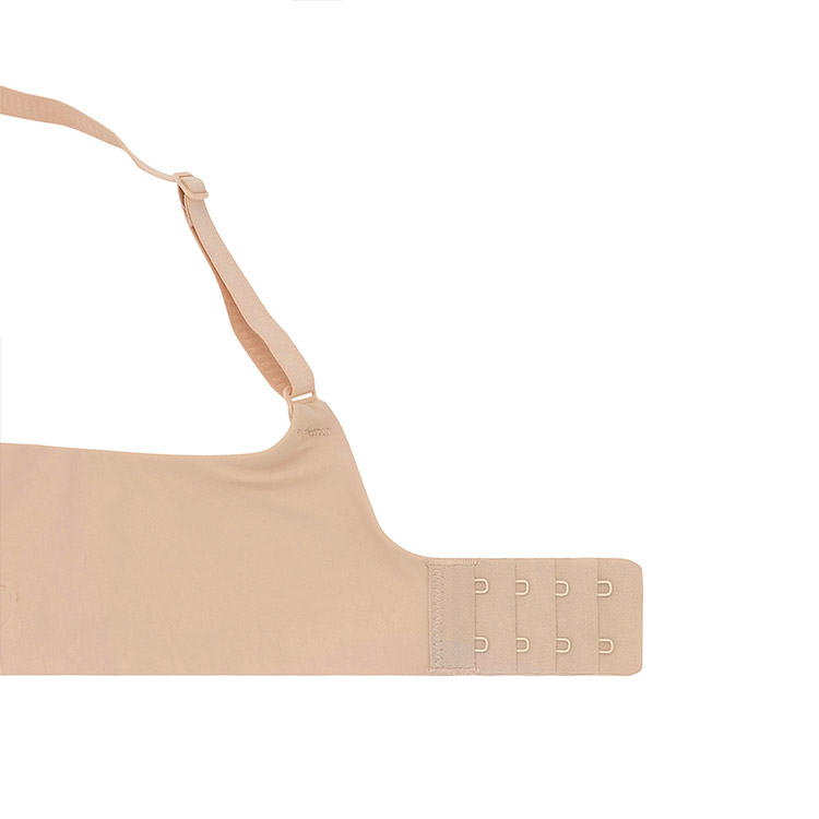 背中は生地の内側にテープを挟みこむ仕様で肌あたりが優しく、段差がつきにくいです。