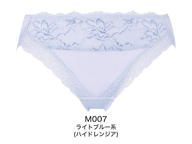後ろ脚口レースは、裏マイクロファイバー糸づかいで柔らかな肌ざわりです。
