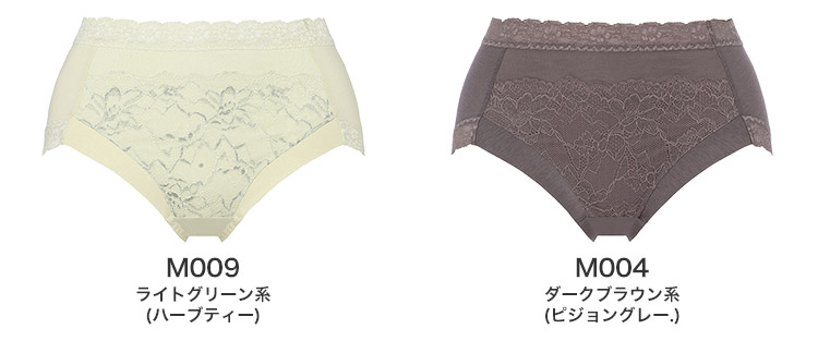 M009 ライトグリーン系(ハーブティー)、M004 ダークブラウン系(ピジョングレー.)