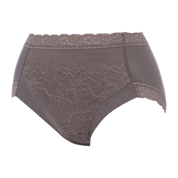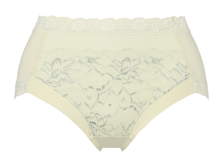 ウエストと後ろ脚口レースは、裏マイクロファイバー糸づかいで柔らかな肌ざわりです。