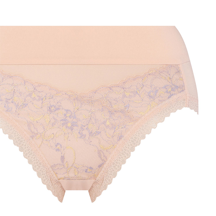 ●ウエスト部分はテープレスで折り返し仕様なので、くいこみにくく楽な着用感ですら問ロレースで、アウターにひびきにくいです。