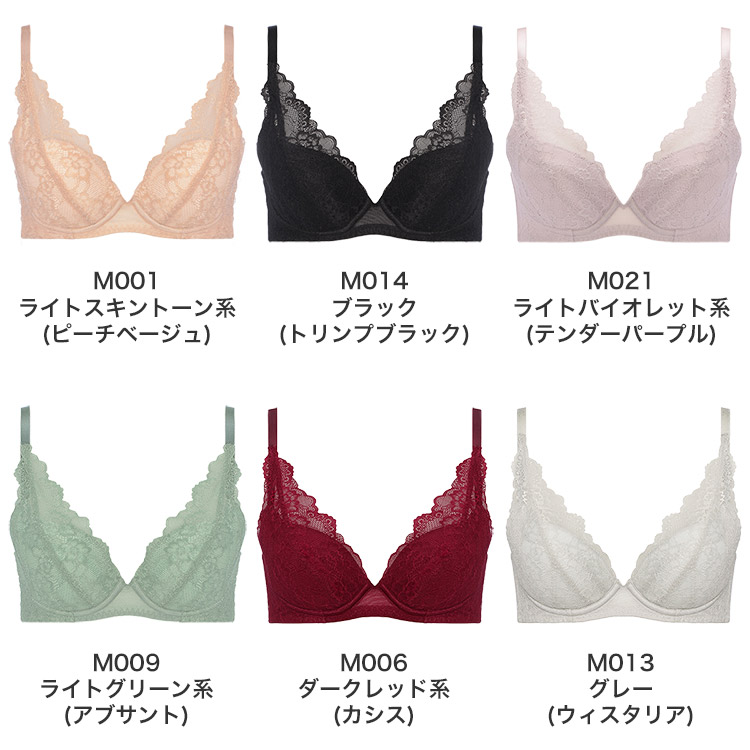 M001 ライトスキントーン(ピーチベージュ)、M009 ライトグリーン系(アブサント)、M014 ブラック(トリンプブラック)、M021 ライトバイオレット系(テンダーパープル)、M006 ダークレッド系(カシス)、M013 グレー(ウィスタリア)