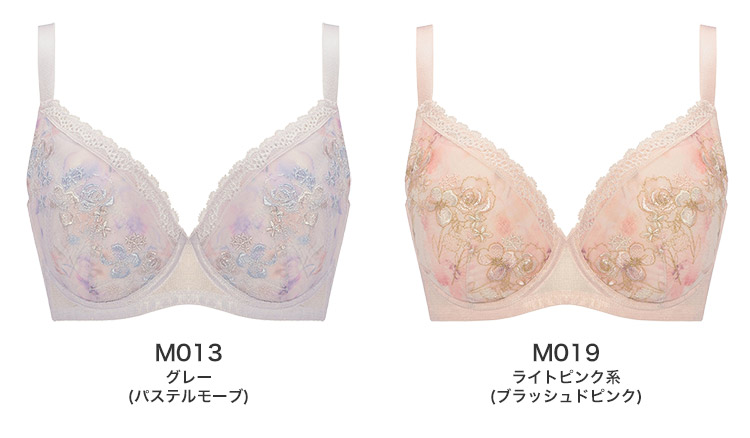 M013 グレー(パステルモーブ)、M019 ライトピンク系(ブラッシュドピンク)