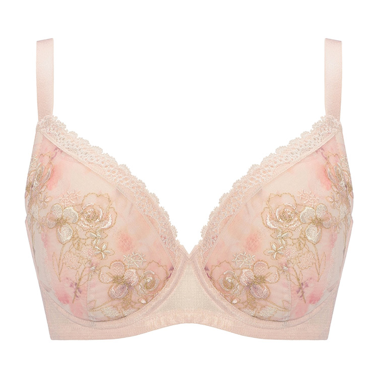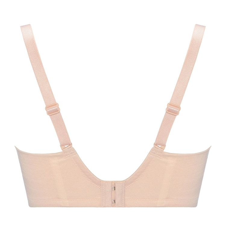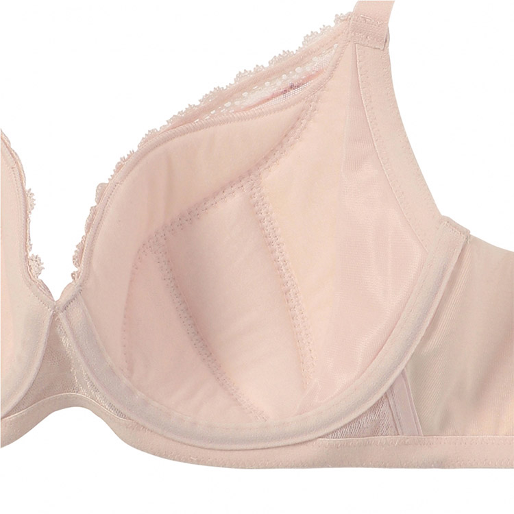 ●やわらかいカップ素材と高さをおさえるカップパターンで、バストボリュームをカップ全体に分散させ、高さをおさえた丸いシルエットに整えます。