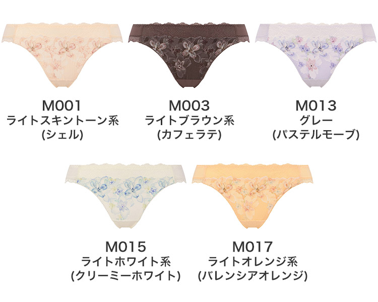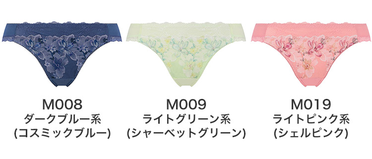 M001(ライトスキントーン系)、M003(ライトブラウン系)、M013(グレー)、M015(ライトホワイト系)、M017(ライトオレンジ系)、M008 ダークブルー系(コスミックブルー)、M009 ライトグリーン系(シャーベットグリーン)、M019 ライトピンク系(シェルピンク)