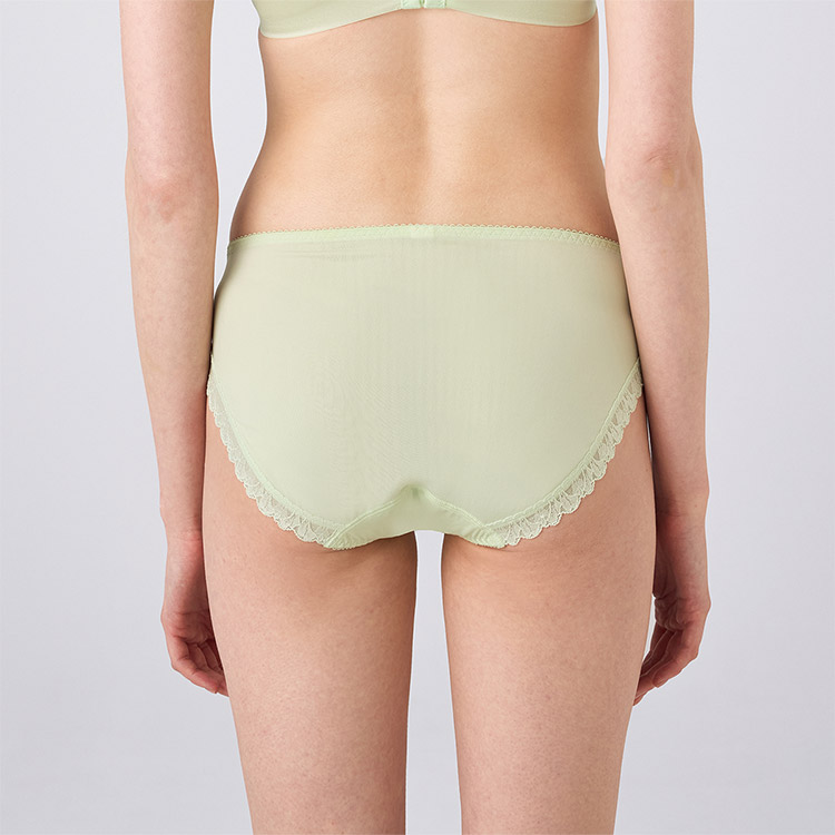 ●フロント上部、後ろ脚口にストレッチレースを使用しています。