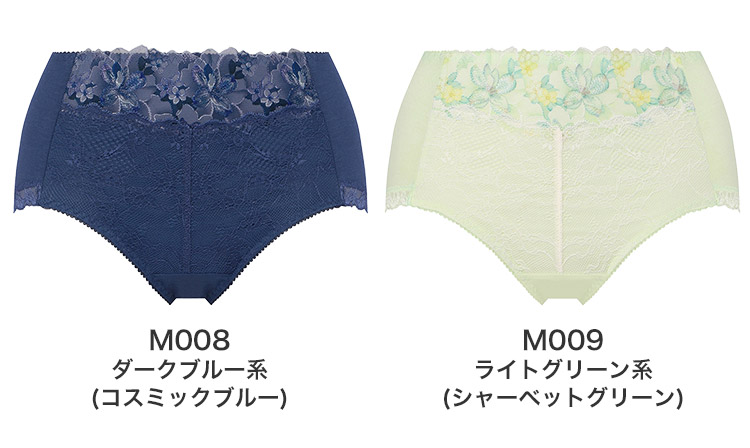 M003(ライトブラウン系)、M013(グレー)、M008 ダークブルー系(コスミックブルー)、M009 ライトグリーン系(シャーベットグリーン)