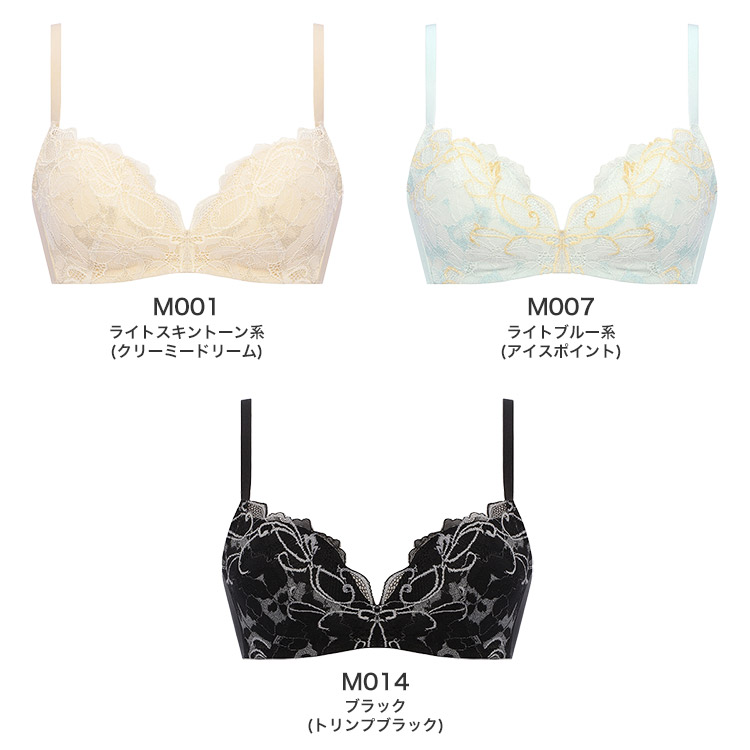 M001 ライトスキントーン系(クリーミードリーム)、M007 ライトブルー系(アイスポイント)、M014 ブラック(トリンプブラック)