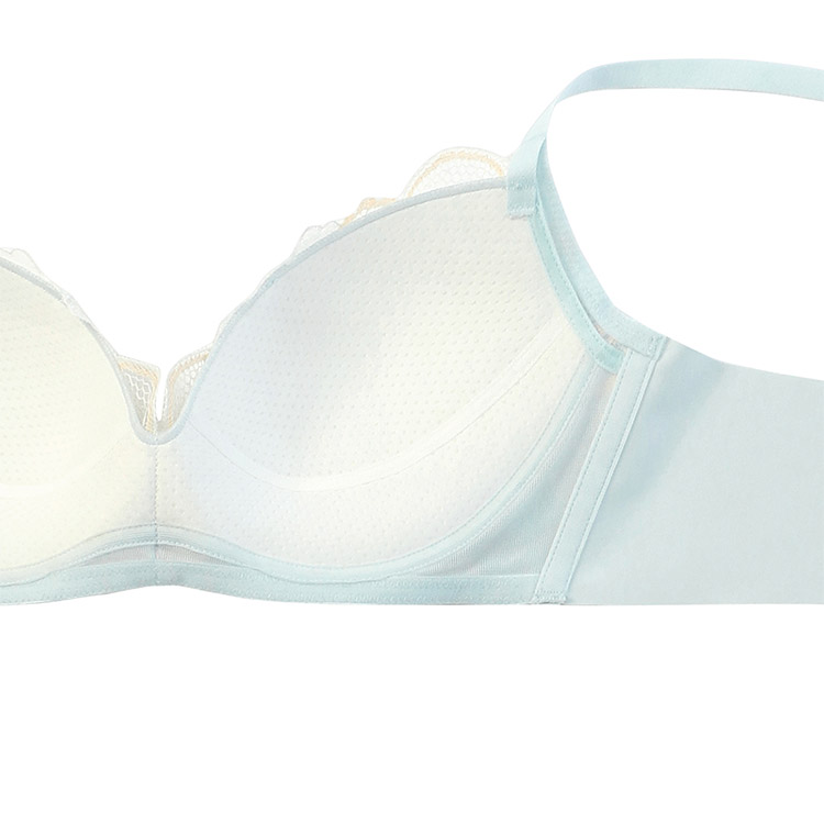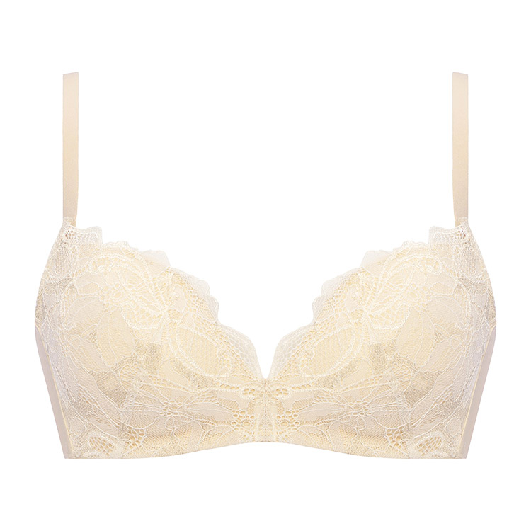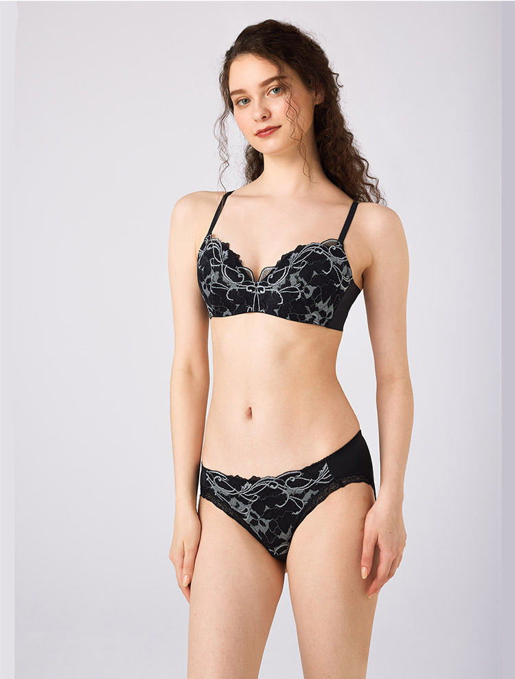高いパターンなのでバストを寄せてサポートするのでノンワイヤーでも安定感のある着けごこちです。