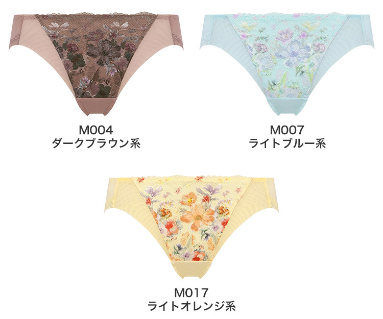 M004 ダークブラウン系、M007 ライトブルー系、M017 ライトオレンジ系