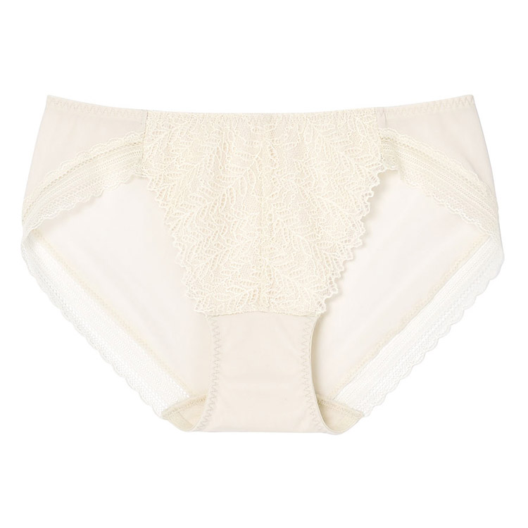 大地からニョキっと芽吹く葉の生命力が『さあ、わたし』に繋がるリーフ柄のレースをあしらったショーツ。