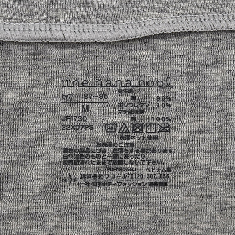 | 素材 | 身生地:綿90%、ポリウレタン10%、マチ部肌側:綿100% |