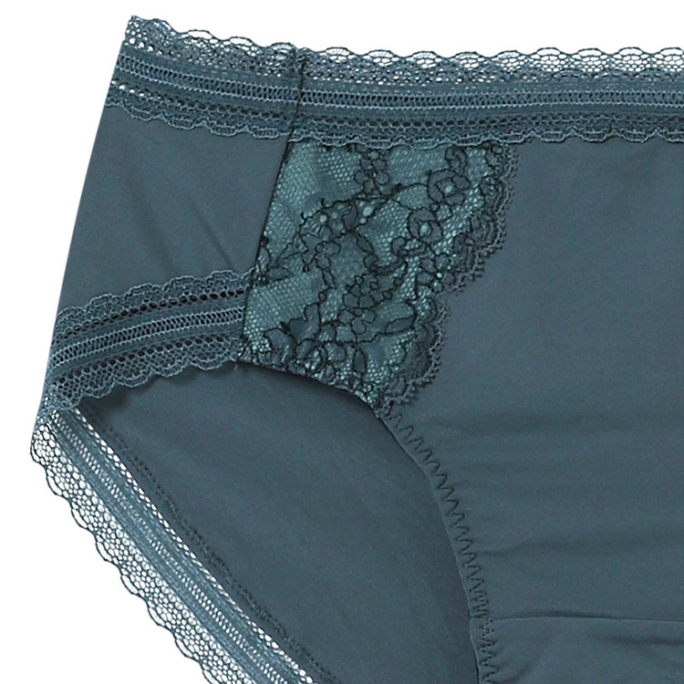 ウエストとヒップ裾にはレースを使用しているので、洋服にラインがひびきにくい。