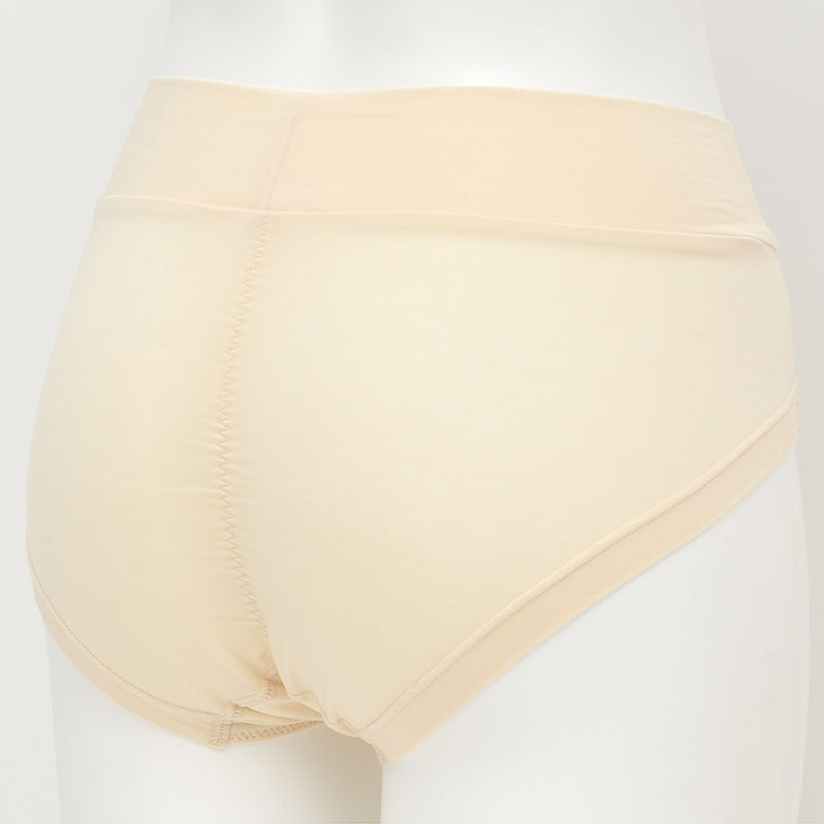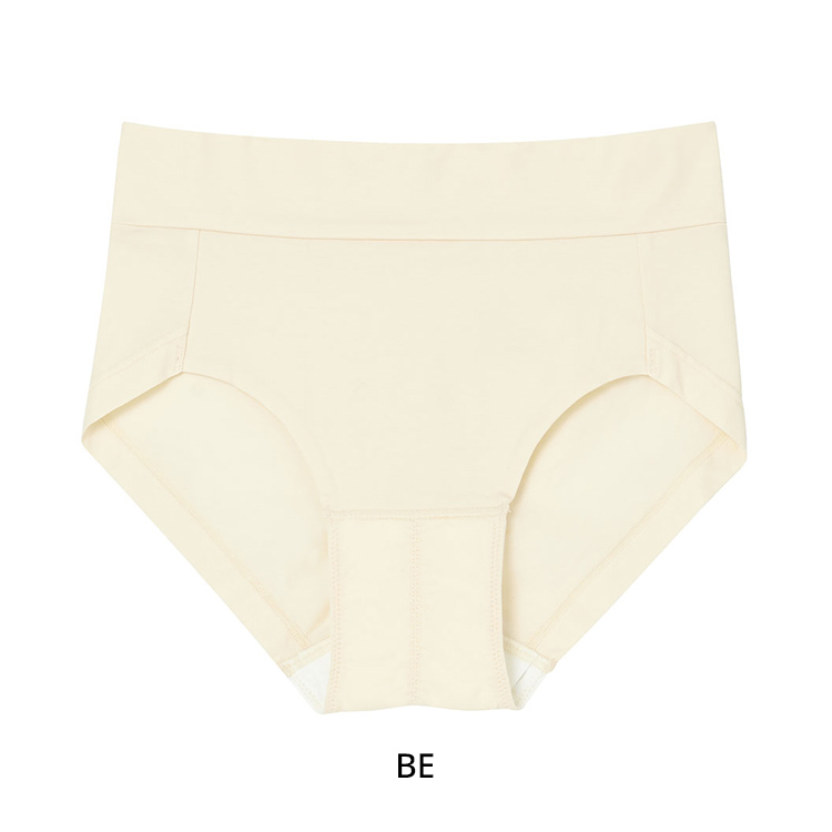 毎日の洋服に合わせやすい、ミニマルなデザインのサニタリーショーツ。 日本製の綿混生地はシルケット加工(※1)でなめらかな高級感のある仕上がり。※1 シルクのような美しい光沢や風合いを生む加工ヒップ中心のギャザーでおしりにフィットし、ナプキンがずれにくい。クロッチ裾はゴムを生地で覆っているので汚れが落としやすく、横モレが気になりにくい。ウエストと足ぐりはゴムが直接あたらない仕様で、ソフトな肌あたり。取扱い表示は本体生地にプリントをしているので、肌あたりがやさしい。浮かしクロッチは綿混生地で、肌あたりがやさしい。 | |