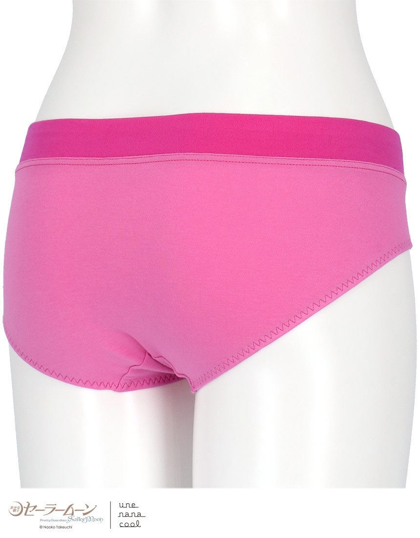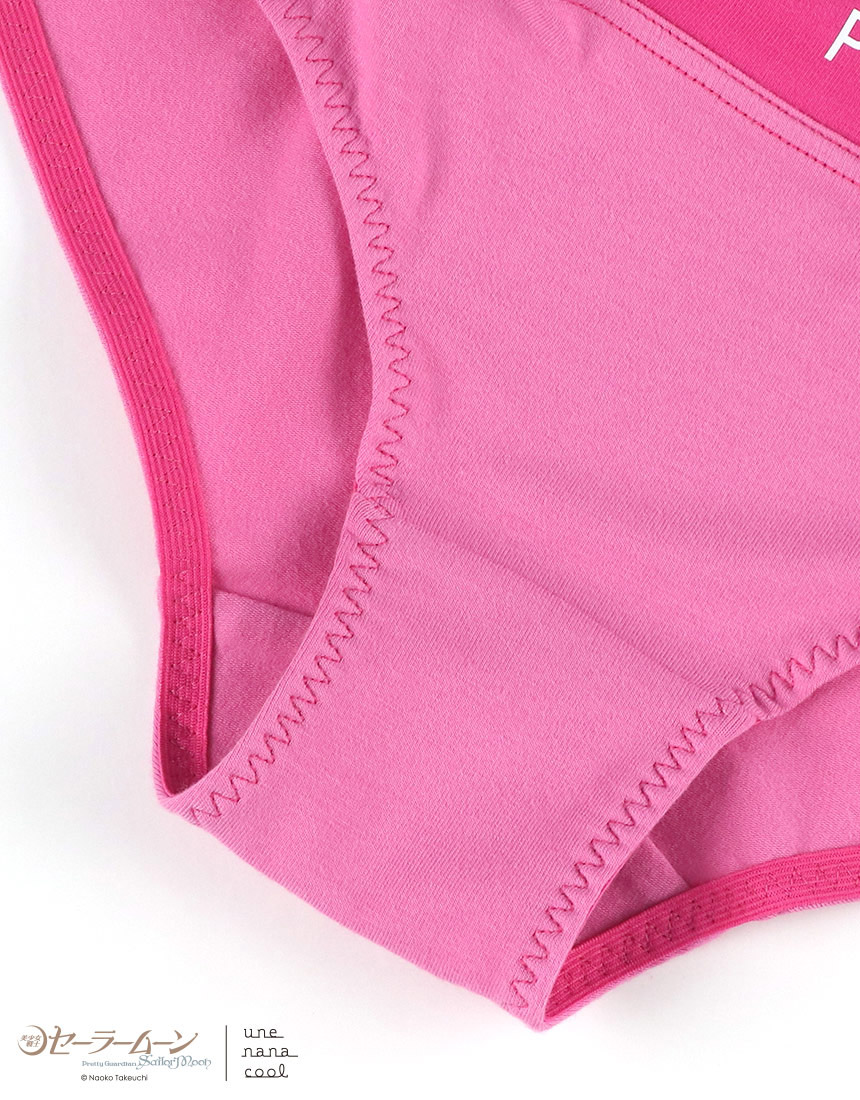 ショーツは、キャラ名やタイトル、三日月のマークをウエスト部に配置した、シンプルなデザイン。