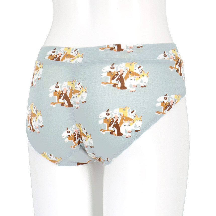 馬が9頭、まるっと集まっているプリント柄で縁起をかつぎます。