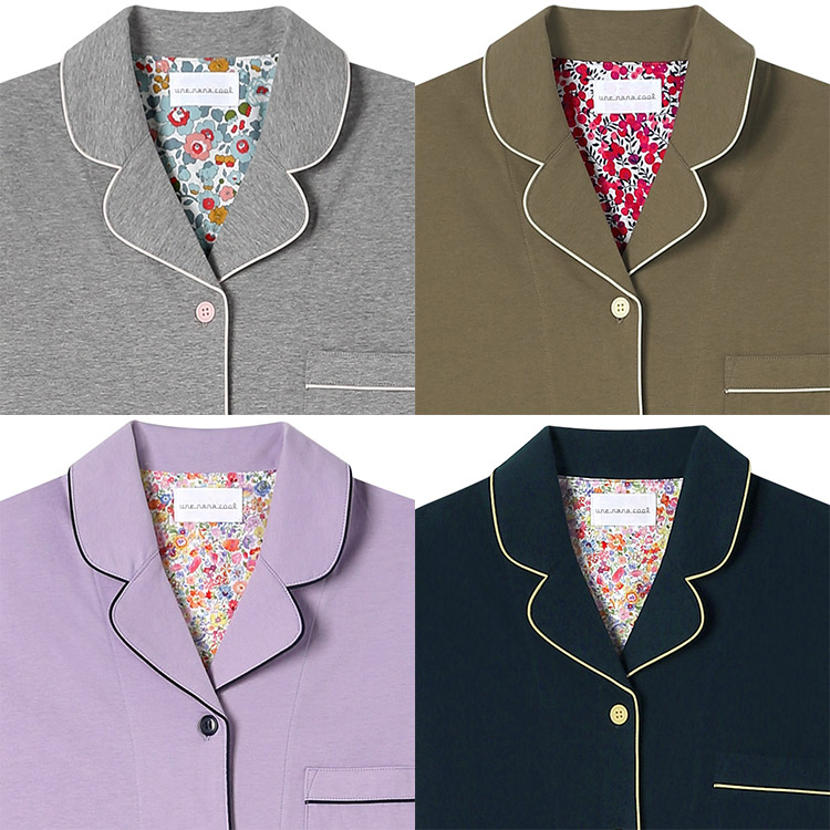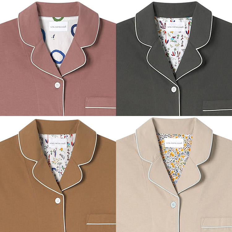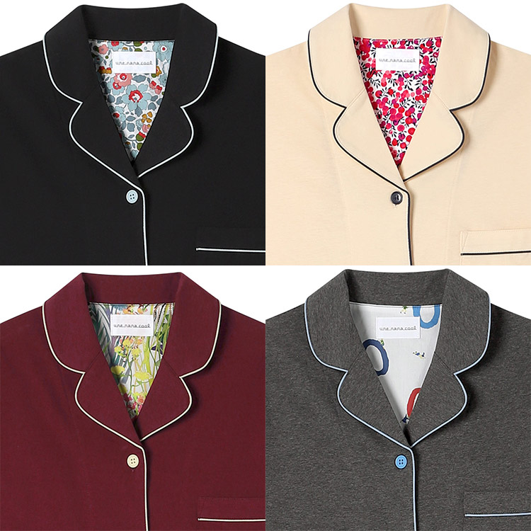 | アウターアイテムに使用されるテキスタイル(生地)で、少量ずつ余った生地をウンナナクールがパジャマづくりにアップサイクル。 本来は上質なアウター用途に生産されたテキスタイル(生地)の中から、パジャマにぴったりな肌触りや風合いのものを厳選して使用しています。 テキスタイル(生地)に限りがあるため、各カラーともに数量限定でのご用意になります。 少量しか生産ができない分生地や縫製のクオリティからすると、驚くほどコスパの高い商品ラインナップがご用意できました。 かわいく着られて、ちょっぴり高級感のある開襟シャツのパジャマ。 パイピングの配色とカラーによって異なる背当てのリバティ柄がデザインポイント。 やわらかな綿100%の生地はパジャマにピッタリな素材です。 おうちでくつろぐ時やラウンジウェアとしてもおすすめのアイテムです。 |